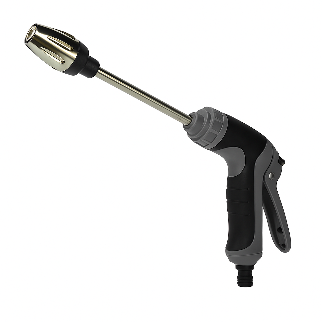 Entwickelt und patentiert in Deutschland, vereint der HydroJet Pro Effizienz, Komfort und Nachhaltigkeit. Mit nur 32 cm Länge ist er kompakt, handlich und jederzeit einsatzbereit – einfach an den Gartenschlauch anschließen und loslegen.